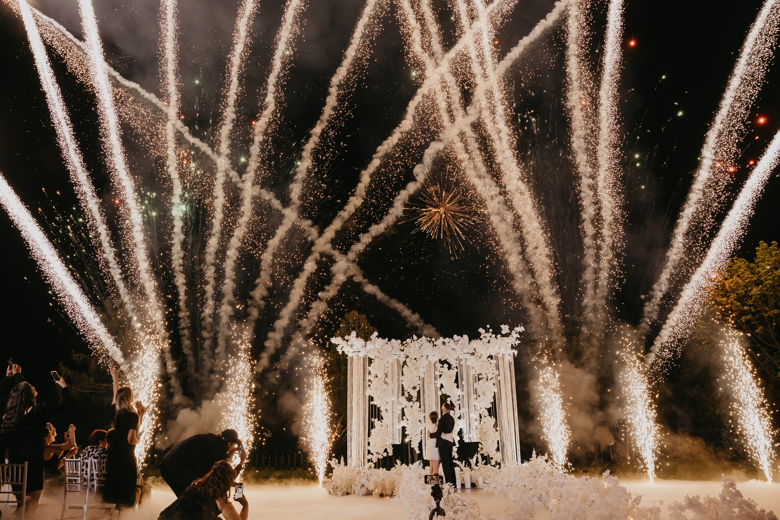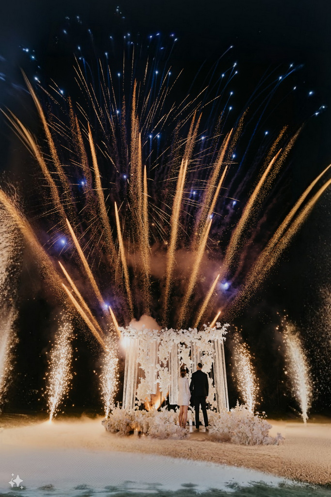 Фейерверки добавляют волшебства и радости, создавая праздничное настроение для любого события, будь то свадьба, юбилей или корпоратив.