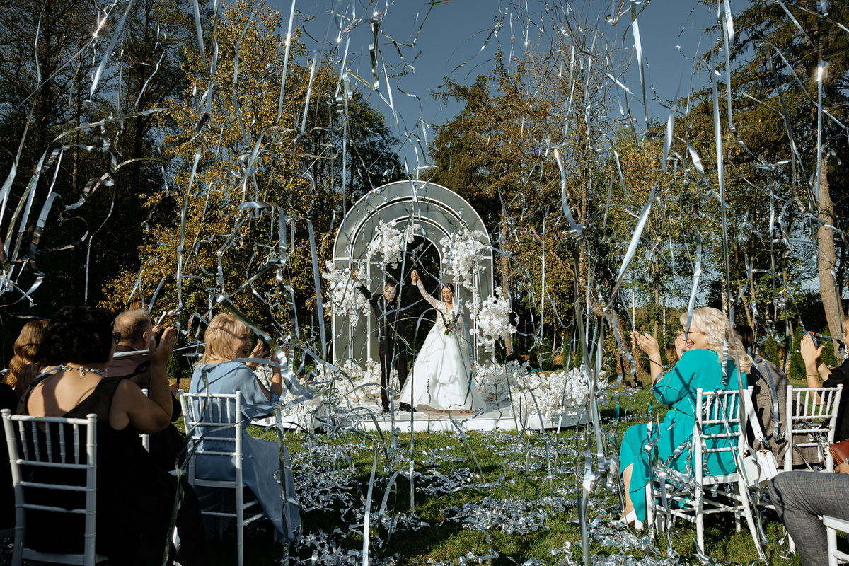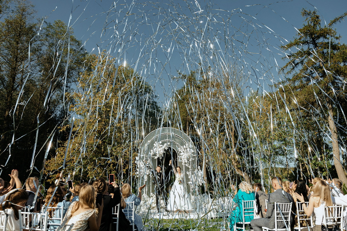 Падение конфетти и серпантина вызывает сильные эмоции у гостей, создавая атмосферу восторга и радости.