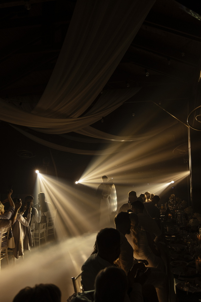 С помощью света можно акцентировать внимание на ключевых моментах, таких как открытие мероприятия, первый танец, торт или поздравления от гостей.